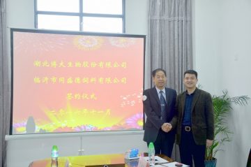 隨后(hou)(hou),雙方(fang)在(zai)會議(yi)室就養(yang)殖生產(chan)中的(de)(de)(de)用(yong)藥(yao)理念(nian)、豬場設計建設、放養(yang)模式(shi)(shi)、飼料生產(chan)以及博大產(chan)品的(de)(de)(de)實(shi)際效用(yong)進(jin)行了(le)交流。邢總(zong)表(biao)示在(zai)目前(qian)已經展開合(he)(he)(he)作(zuo)的(de)(de)(de)基礎上,通(tong)過(guo)此次考(kao)察對(dui)博大公(gong)(gong)(gong)司的(de)(de)(de)綜合(he)(he)(he)實(shi)力(li)有了(le)更加全(quan)面細(xi)致的(de)(de)(de)了(le)解,對(dui)2017年展開全(quan)面深入合(he)(he)(he)作(zuo)信心滿(man)滿(man)。吳總(zong)感(gan)謝邢總(zong)長期以來對(dui)公(gong)(gong)(gong)司的(de)(de)(de)認可和(he)(he)支持,公(gong)(gong)(gong)司會制定(ding)詳細(xi)可操作(zuo)的(de)(de)(de)合(he)(he)(he)作(zuo)方(fang)案(an)實(shi)現博大公(gong)(gong)(gong)司、同盛德公(gong)(gong)(gong)司、養(yang)殖戶(hu)三方(fang)共(gong)(gong)贏。雙方(fang)在(zai)現場達(da)成共(gong)(gong)識,并進(jin)行了(le)簽約儀式(shi)(shi)。本次簽約成功為雙方(fang)今后(hou)(hou)的(de)(de)(de)長期穩固的(de)(de)(de)合(he)(he)(he)作(zuo)奠定(ding)了(le)基礎,同時也標志著博大公(gong)(gong)(gong)司的(de)(de)(de)知名度和(he)(he)行業影(ying)響力(li)越來越強!