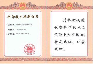 4月2日(ri)上(shang)午, 2017年度湖(hu)(hu)(hu)北省(sheng)科學技(ji)術獎(jiang)(jiang)(jiang)勵(li)大(da)(da)(da)會在武漢召開。華(hua)中農業大(da)(da)(da)學校長(chang)鄧秀(xiu)新院士獲(huo)(huo)“突出貢獻獎(jiang)(jiang)(jiang)”,湖(hu)(hu)(hu)北博大(da)(da)(da)生(sheng)物股份有限(xian)公司榮獲(huo)(huo)“湖(hu)(hu)(hu)北省(sheng)科技(ji)型中小企(qi)業創新獎(jiang)(jiang)(jiang)”。湖(hu)(hu)(hu)北省(sheng)委書(shu)記(ji)蔣超良、省(sheng)長(chang)王曉東給獲(huo)(huo)獎(jiang)(jiang)(jiang)人(ren)員頒獎(jiang)(jiang)(jiang)。湖(hu)(hu)(hu)北博大(da)(da)(da)作為獲(huo)(huo)獎(jiang)(jiang)(jiang)代表特(te)邀參加會議。